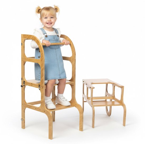 - Stimuleert Zelfstandigheid: Een leertoren stelt je kind in staat om zelfstandig te helpen bij het koken en andere taken in de keuken, waardoor ze meer zelfvertrouwen krijgen.